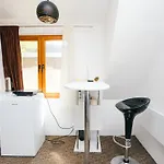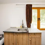Här finns mathörna med köksutrustning, såsom vattenkokare och kylskåp.